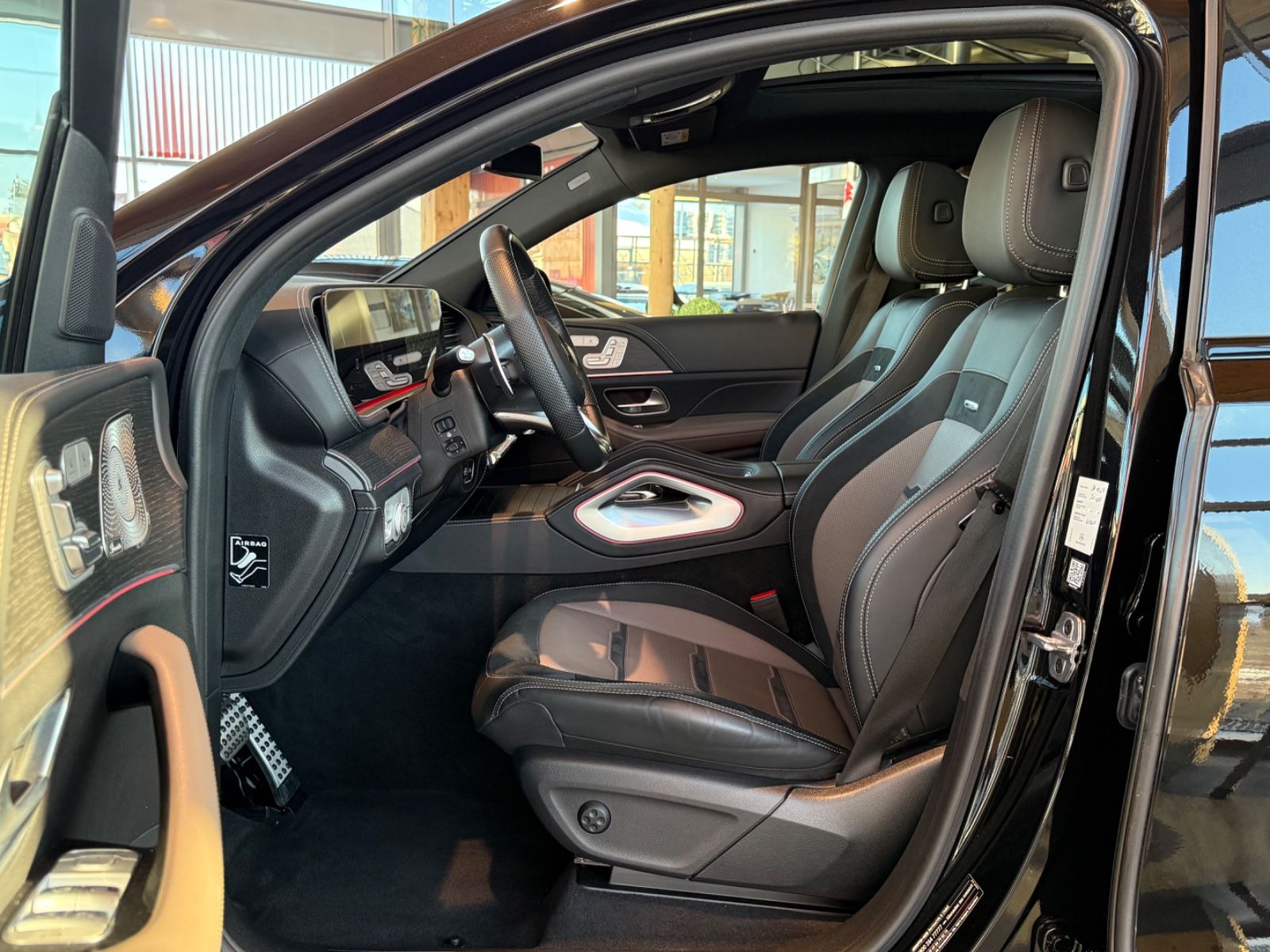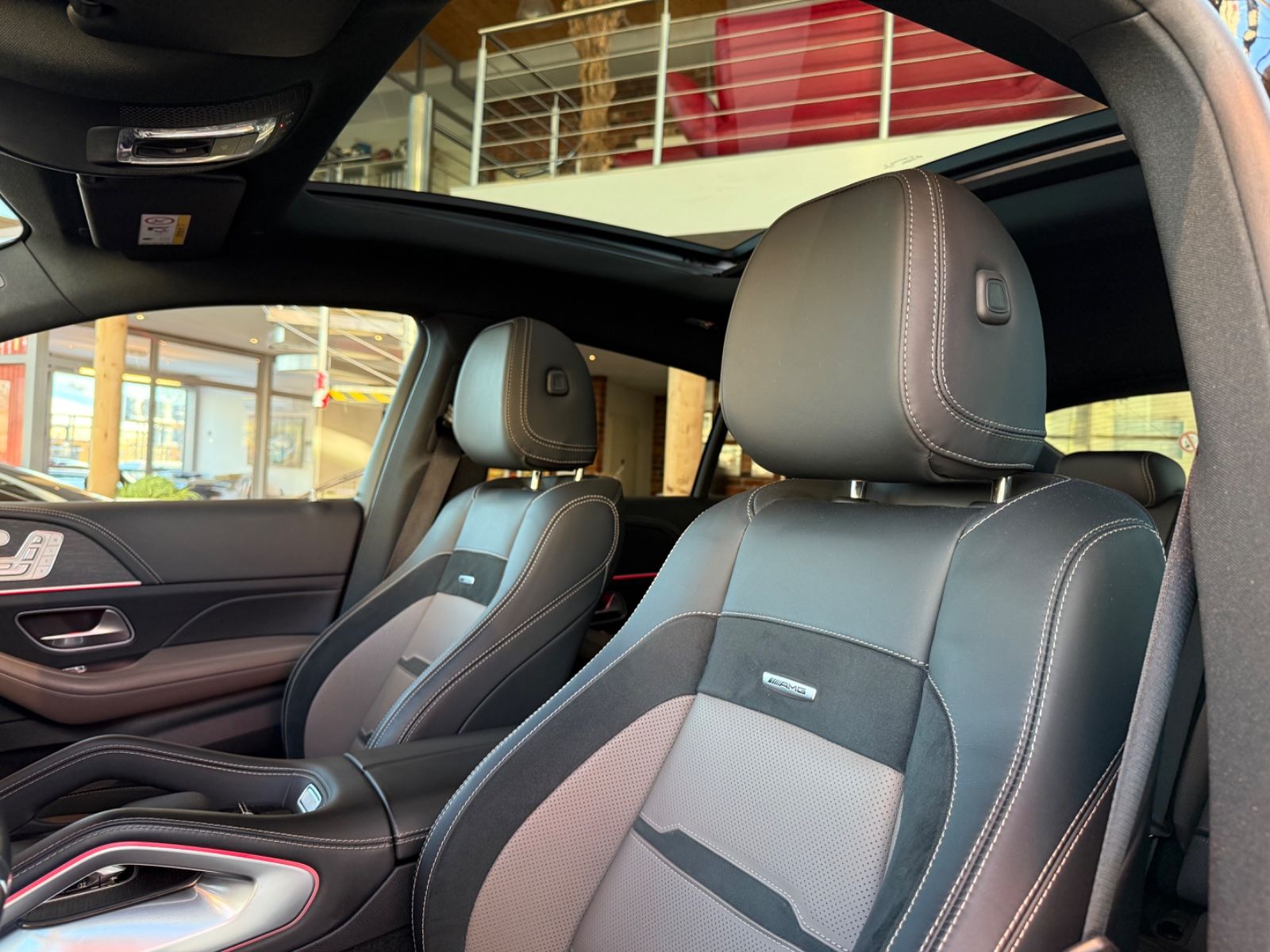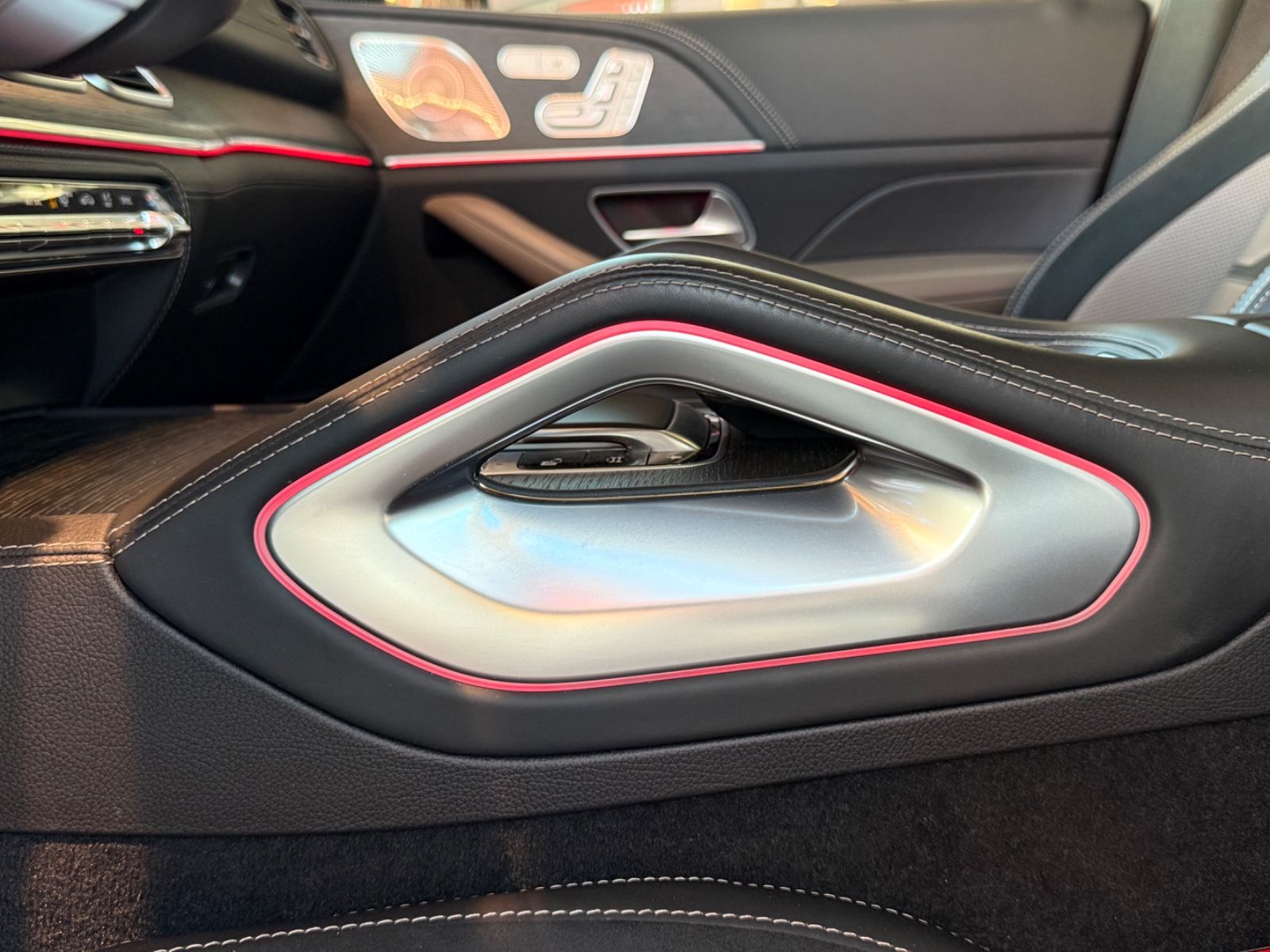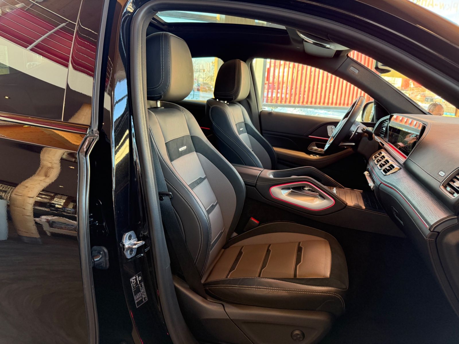 AMG Active Ride Control, AMG Sport-Abgasanlage, el. Panorama Glasschiebedach, Adaptive Scheibenwischeranlage (Magic Vision Control) beheizt, Armaturentafel in Ledernachbildung Artico, Diebstahlschutz-Paket Plus, Fahrassistenz-Paket Plus, Innenausstattung: Holz Eiche, Komfort-Paket Akustik, Lenkrad heizbar, LM-Felgen 9x20 (AMG, 5-Doppelspeichen, schwarz), Memory-Paket, Night-Paket (AMG), Panorama-Schiebedach, Park-Paket mit 360° Kamera, Reifen-Reparaturset (Tirefit), Servoschliessung für Türen, Sitzbezug / Polsterung: Leder Nappa, 2-farbig, Sport-Auspuffanlage (AMG Performance), Sport-Fahrwerk (AMG Active Ride Control), Surround-System Burmester