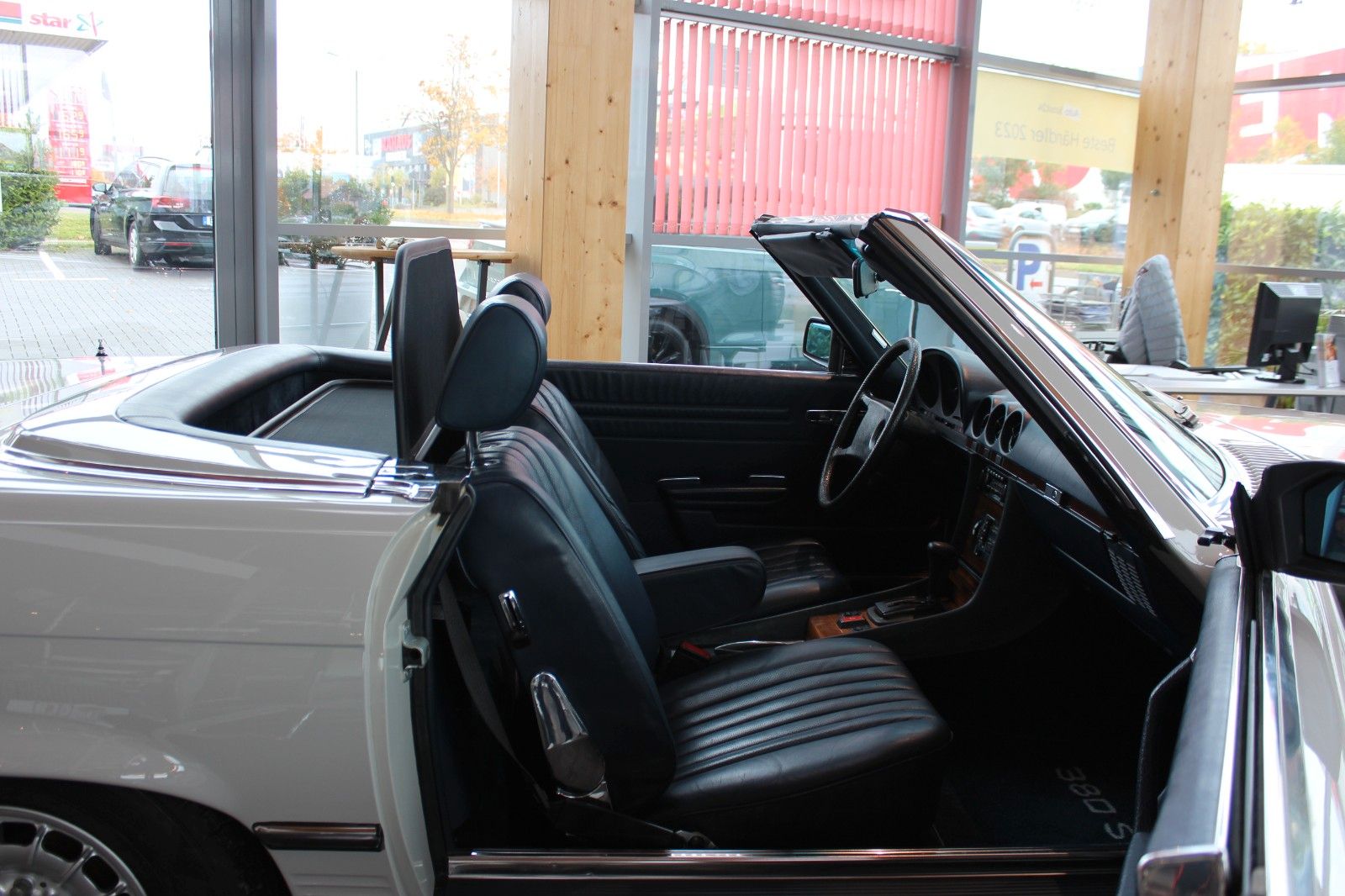 Mercedes Benz R 107 SL 380 Cabrio V8 im Bestzustandmit H-Zulassung.!Der Mercedes-Benz SL 380 wurde 1981 in der wunderschönen Farbkombination außen "Pastellgrau" #740 und innen Leder Nappa Blau #232 ausgeliefert.