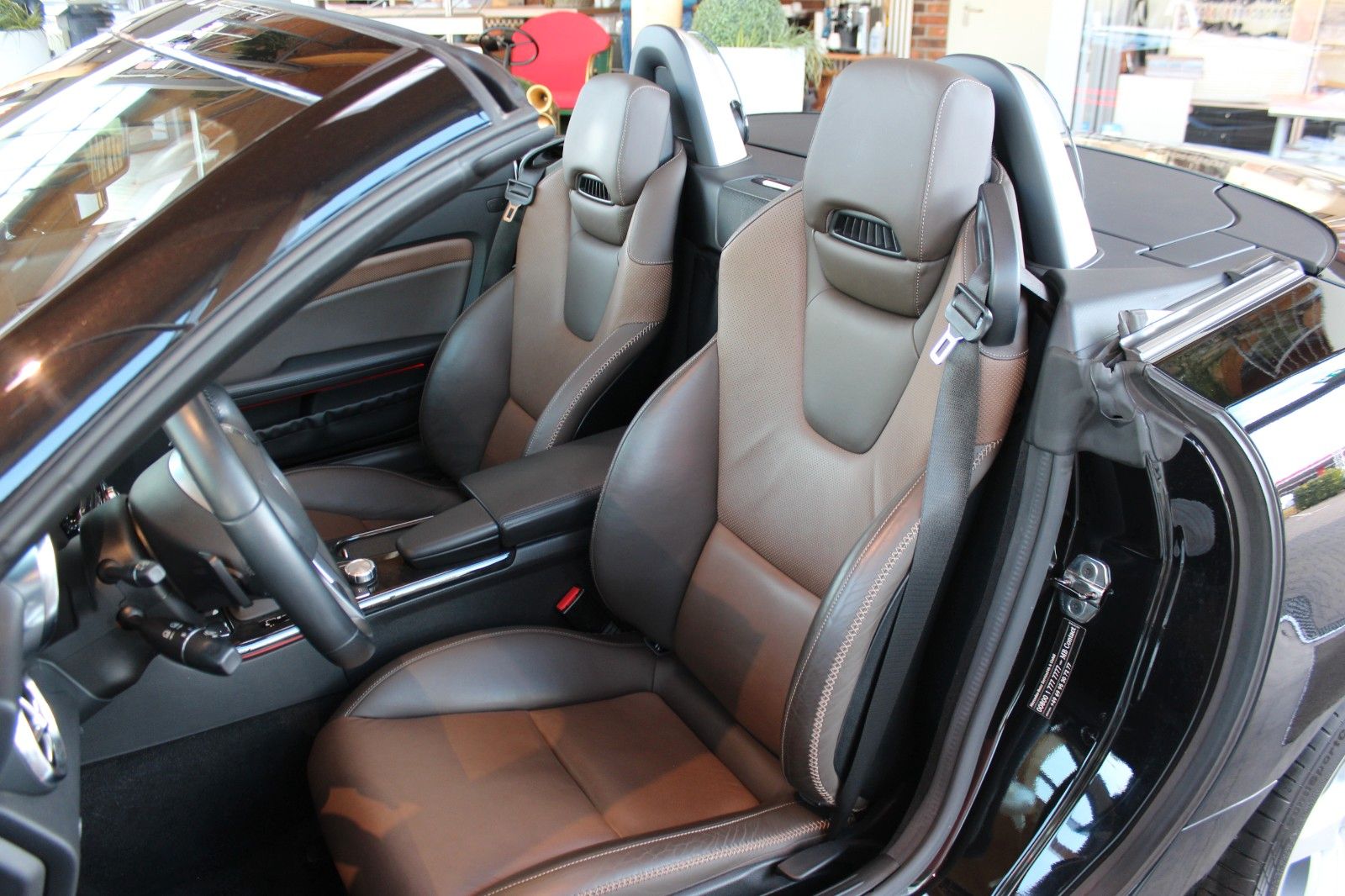 Sportpaket AMG, Panorama-Variodach getönt, Bi-Xenon ILS, Navigation COMAND, Harm Kardon Soundsystem, 18" AMG-LM Räder, Lenkrad-Schaltpaddels, Ambiente-Beleuchtung, Audio-Navigationssystem: Autopilot-System APS COMAND, Bi-Xenon-Scheinwerfer mit adaptiver Lichtverteilung (Intelligent Light System), Innenausstattung: Edelholz Esche, schwarz, Kopfraumheizung (Airscarf), Metallic-Lackierung, Panorama-Variodach elektrisch, Parktronic-System PTS (vorn und hinten), Sitzheizung vorn, Sound-System Harman-Kardon mit Logic7-Surround-System, Spiegel-Paket, Sport-Paket (AMG / AMG-Line), Windschott Glas (Airguide), Zeituhr (Analog), Überrollbügel Aluminium
