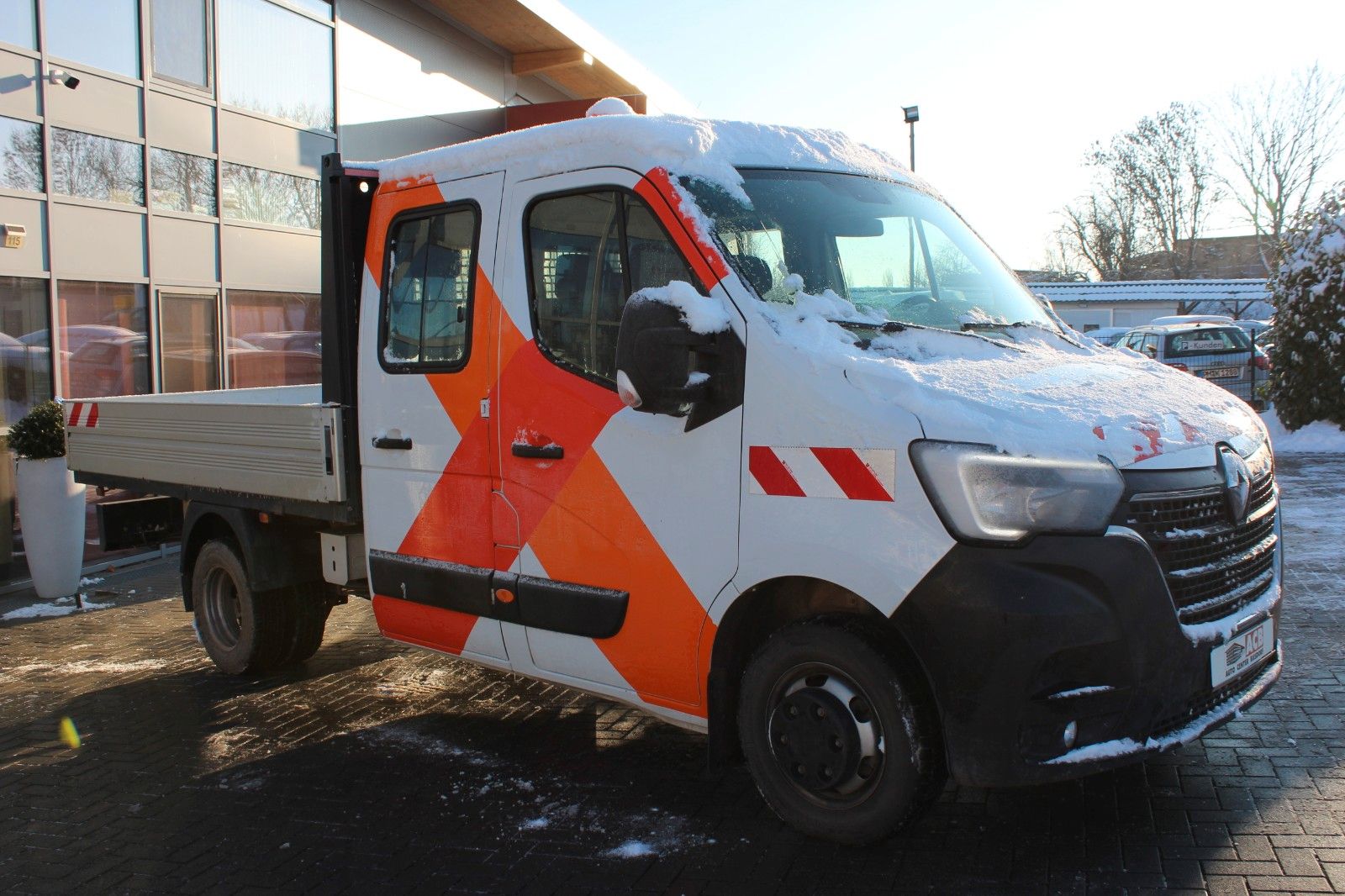 Ablagegalerie, Airbag Fahrerseite, Aufbau Pritsche, Außenspiegel elektr. verstell- und heizbar, Außentemperaturanzeige, Begrenzungsleuchten seitlich, Bordcomputer, Bremsassistent, Drehzahlmesser, Elektr. Bremskraftverteilung, Generator 185 A, Innenraumfilter: Pollenfilter, Karosserie/Aufbau: Pritsche Doppelkabine Standard, Lenksäule (Lenkrad) höhenverstellbar, Modellpflege (2), Motor 2,3 Ltr. - 120 kW BLUE dCi Diesel FAP Energy KAT, Radstand 3682 mm, Reserverad in Fahrbereifung, Schadstoffarm nach Abgasnorm Euro VI, Schaltpunktanzeige, Sitzbezug / Polsterung: Stoff, Sitze im Fahrerhaus: 2.Reihe 4er-Sitzbank, Sitze im Fahrerhaus: Beifahrerdoppelsitz multifunktional, Sitze im Fahrerhaus: Fahrersitz höhenverstellbar, Tagfahrlicht LED, Wärmeschutzverglasung, Zul. Gesamtgewicht 3,50 t, Zwillingsbereifung Hinterachse u.v.m.