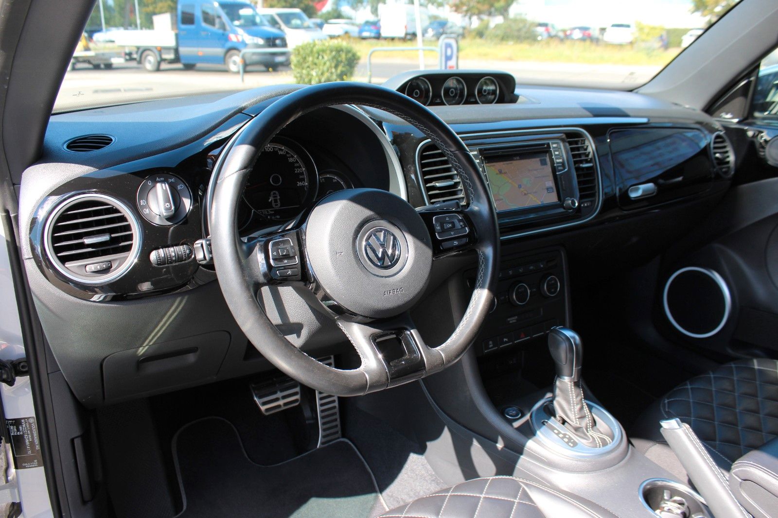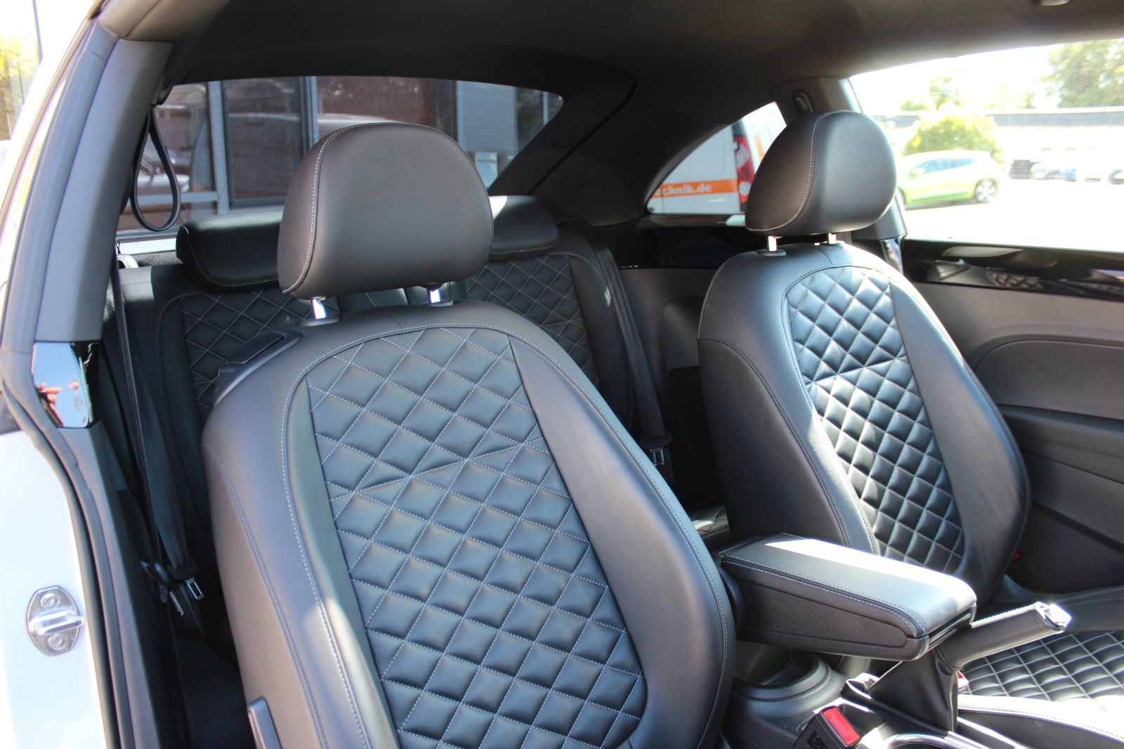 Exclusive R-Line, Bi-Xenon Scheinwerfer, el. Panorama Glasschiebedach, Leder Nappa Cool Leather in schwarz mit Rautensteppung, Fender Soundsystem, Navigation Discover Media, Komfortpaket, DAB+ digitaler Radioempfang, Rückfahrkamera, Keyless Access, App-Connect, Audiosystem Composition Media (Touchscreen, Radio/CD-Player, MP3, Bluetooth), Ausstattungs-Paket: Licht + Sicht, Außenspiegel elektr. anklappbar, Außenspiegel verchromt, Bi-Xenon-Scheinwerfer, Fahrassistenz-System: Blind Spot Sensor mit Auspark-Assistent, Heckleuchten LED, Komfort-Paket inkl. Klimaautomatik, Lenkrad (Leder) mit Multifunktion und Schaltfunktion, Metallic-Lackierung, Multimedia-Schnittstelle USB (iPhone / iPod) mit AUX-IN, Navigationsmodul Discover Media (für Audiosystem), Panorama-Schiebedach elektrisch, Radioempfang digital (DAB+), Rückfahrkamera (Rear View), Schriftzug auf der Gepäckraumklappe (Käfer / Beetle), Sound-System Fender Sound (inkl. Verstärker und Subwoofer), Zusatzinstrumente