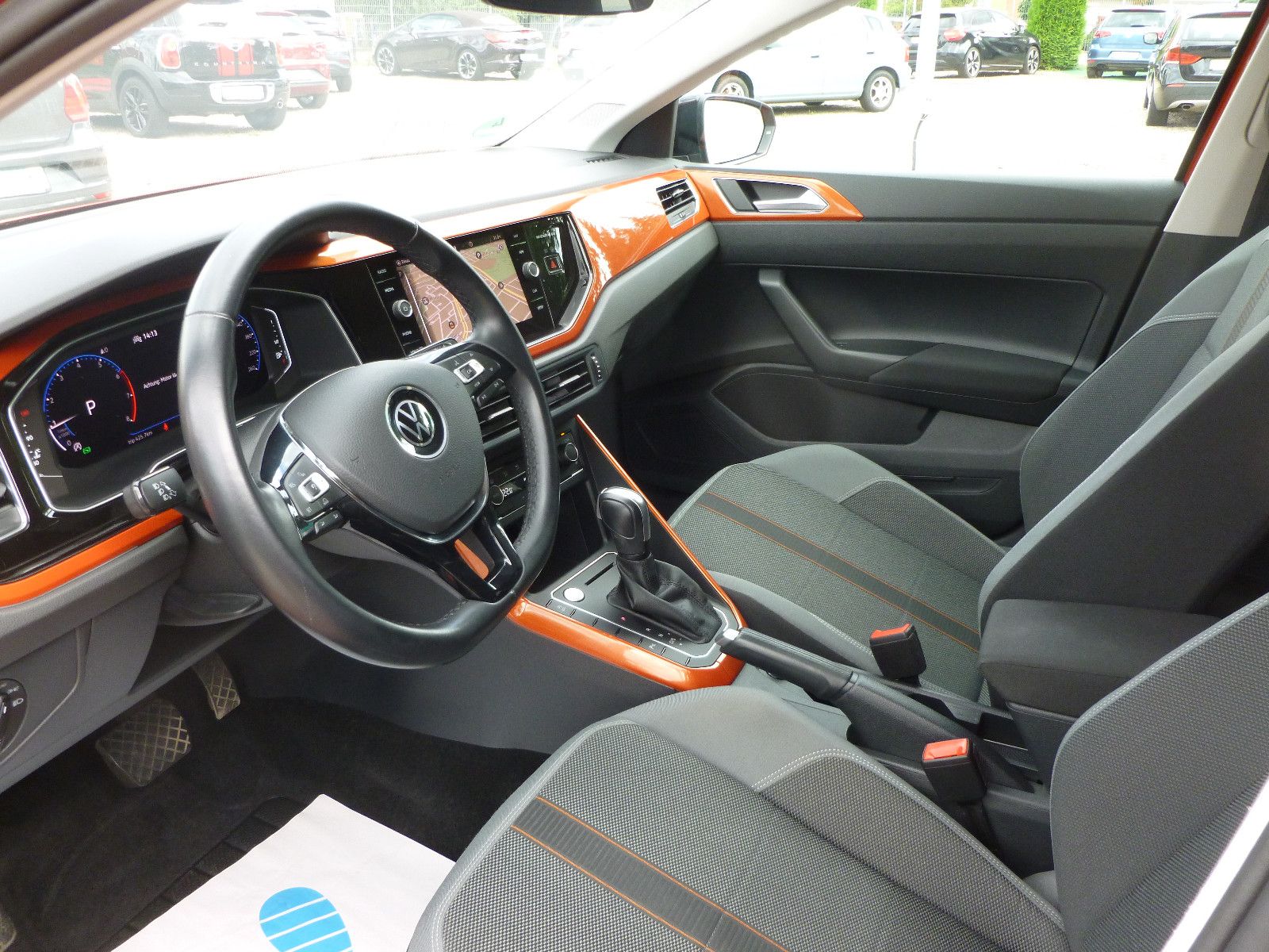 Active Info-Display (Instrumentenanzeige digital) Audio-Navigationssystem Discover Media Streaming & Internet (Touchscreen, Bluetooth, USB) Audiosystem Ready 2 Discover (inkl. Streaming & Internet, Touchscreen, Bluetooth) Dach schwarz lackiert Dekor-Paket Energetic Orange Design-Paket Dach (Roof Pack) Heckleuchten LED, dunkelrot Klimaanlage Climatronic 2-Zonen Lautsprecher (6) Lendenwirbelstützen vorn LM-Felgen 6,5x16 (Torsby, schwarz) Metallic-Lackierung R-Line-Paket Exterieur 3-Punkt-Sicherheitsgurt hinten mitte Ablagetasche an Vordersitzlehnen Airbag Fahrer-/Beifahrerseite Beifahrerairbag abschaltbar Ambiente-Beleuchtung weiß Antriebs-Schlupfregelung (ASR) Automatische Fahrlichtschaltung (ALS) mit Leaving Home / Coming-Home-Lichtfunktion Bluetooth-Schnittstelle für Mobiltelefon Bremsassistent Bremsenergierückgewinnung Chrom-Paket 2 Dachhimmel Stoff, grau Drehzahlmesser Einparkhilfe vorn und hinten Fensterheber elektrisch vorn und hinten Frontscheibe Verbundglas getönt Fußraumbeleuchtung vorn LED Gepäckraumabdeckung / Rollo, Gepäckraumbeleuchtung Geschwindigkeits-Begrenzeranlage Handbremshebelgriff Leder Heckscheibenwischer Innenleuchten LED Innenraumfilter: Aktiv Kombifilter Isofix-Aufnahmen für Kindersitz an Rücksitze (inkl. i-Size-Kindersitze) Karosserie: 5-türig Kennzeichenbeleuchtung LED Kopf-Airbag-System vorn und hinten inkl. Seitenairbag vorn Kopfstützen hinten (3-fach) Kühlergrill schwarz mit Chromleiste Lenkrad (Leder) mit Multifunktion und Schaltfunktion Lenksäule (Lenkrad) mechan. verstellbar Höhen-/Längsverstellung Leseleuchten vorn und hinten LED Mittelarmlehne vorn verschiebbar, mit Ablagefach Mobile Online Dienste Vorbereitung We Connect und We Connect Plus Motor 1,5 Ltr. - 110 kW 16V TSI ACT Motor-Schleppmoment-Regulator (MSR) Nebelschlussleuchte Nichtraucher-Paket Notrufsystem Otto-Partikelfilter (OPF) Reifenkontroll-Anzeige Rücksitzlehne geteilt Schadstoffarm nach Abgasnorm Euro 6d Schalt-/Wählhebelgriff Leder Schublade / Ablagefach unter Sitze vorn Sicherheitsgurte hinten außen mit Gurtstraffer Sicherheitsgurte vorn mit Gurtstraffer höhenverstellbar, Sitzbezug / Polsterung: Stoff Sitze vorn höhenverstellbar Sitze: Sport-Komfortsitze vorn Sonnenblenden mit Spiegel (beleuchtet) Start/Stop-Anlage Stoßfänger Wagenfarbe mit Chromleiste vorn, Verbandkasten und Warndreieck Verglasung grün getönt Warnanlage für Sicherheitsgurte vorn und hinten